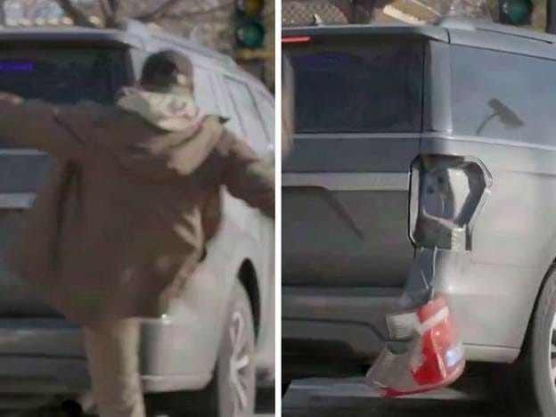 Did the ICE agents recognize Alex Pretti as an “ICU nurse” and think to themselves “Oh yeah, we got a nurse on our hands? DEFINITELY murderating this one!” What a joke. More likely, the ICE agents recognized Alex Pretti for the type of conduct he displayed a few days before his fatal encounter. During another confrontation with ICE agents, Alex Pretti spit at them (a potential felony), yelled “Assault me, motherfucker!”, and kicked the tail light out of their vehicle (also a felony), shown below: